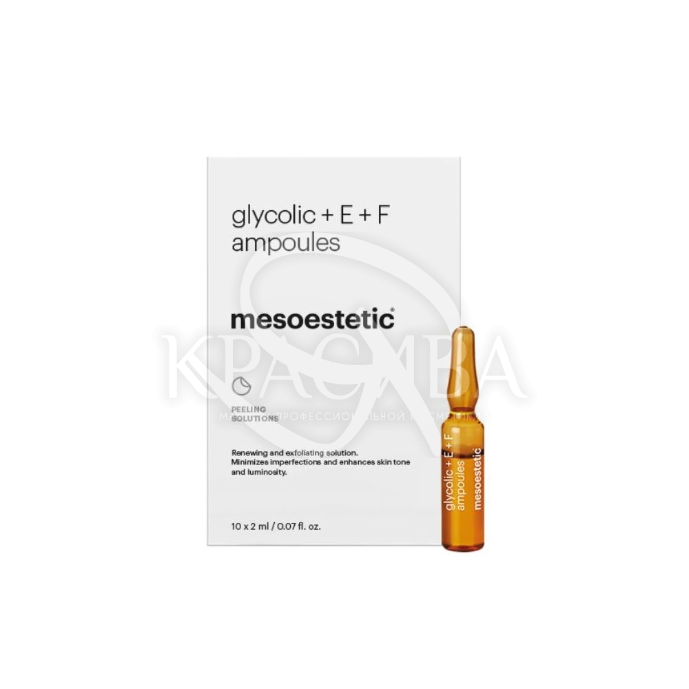 Описание: Ампулы с 10% гликолевой кислотой для профессиональных процедур от Mesoestetic. Восстанавливающий коктейль для всех типов кожи. Стимулирует естественное отшелушивание кожи, удаляя корнеоциты и разглаживая поверхностные морщинки. Регулирует выделение кожного сала, предотвращает образование комедонов, восстанавливает дыхание кожи.