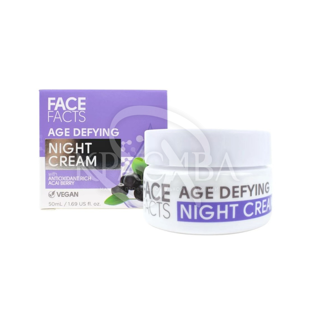 Описание: Антивозрастной ночной крем для лица Face Facts Age Defying Night Cream поможет увлажнить и смягчить кожу в ночное время. Ягода асаи, которая есть в составе крема, известна в мире ухода за кожей как борец против старения, поскольку она помогает уменьшить появление тонких линий.