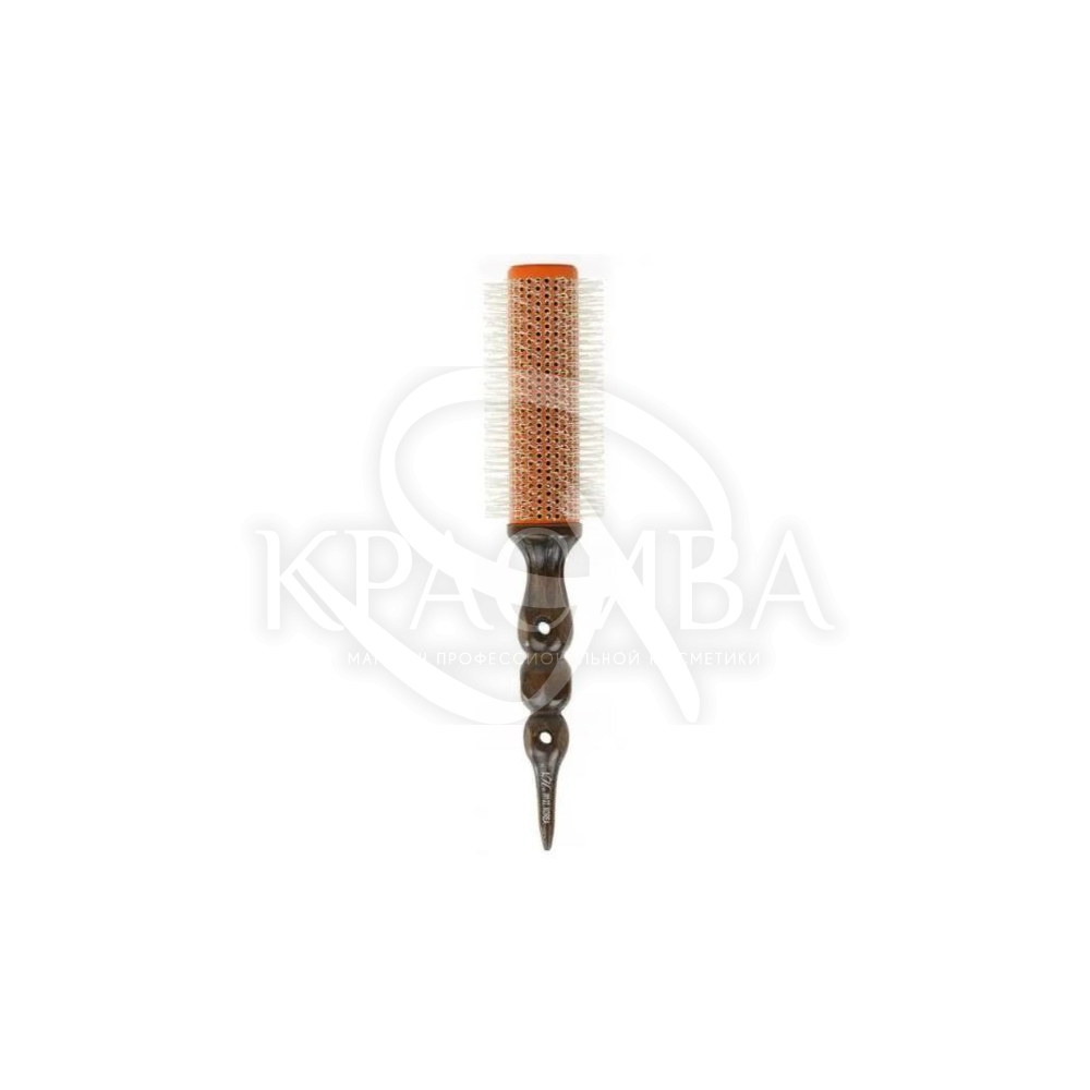 Описание: Этот брашинг имеет специально разработанный барабан с щетинками, изготовленный в два слоя. Внутренний слой из дерева играет роль термоизоляционного материала, тогда как внешний слой – цилиндрический элемент из медицинского алюминия – достигает температуры, похожей на поток воздуха фена. Это позволяет брашингу приобретать свойства плойки, обеспечивая идеально прямые вытянутые волосы или четкие локоны. Алюминиевый цилиндр имеет турмалиновое покрытие, что обеспечивает ионизирующий антистатический эффект. Щетина изготовлена из термостойкого нейлона и микрочастиц серебра, обладает антибактериальными свойствами и нейтрализует неприятные запахи. Нейлоновая щетина устойчива к высоким температурам, что позволяет использовать брашинг с любым феном.