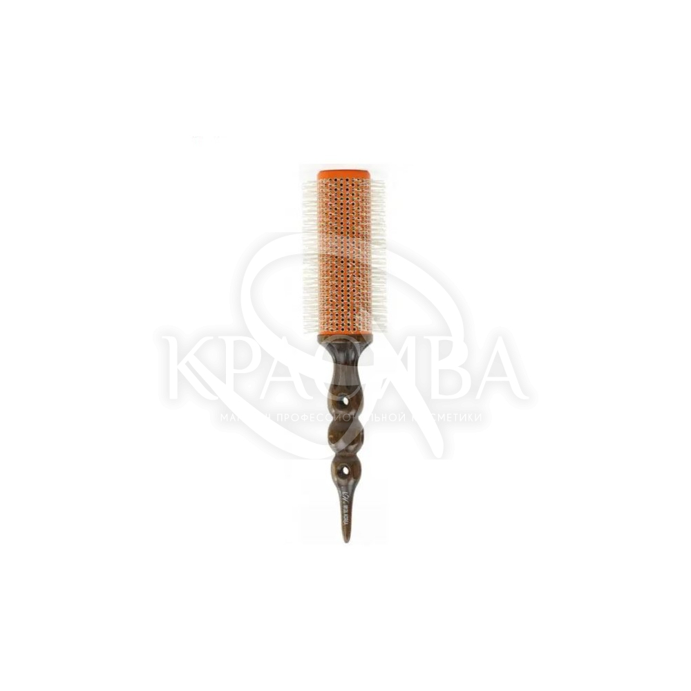 Описание: Этот брашинг имеет специально разработанный барабан с щетинками, изготовленный в два слоя. Внутренний слой из дерева играет роль термоизоляционного материала, тогда как внешний слой – цилиндрический элемент из медицинского алюминия – достигает температуры, похожей на поток воздуха фена. Это позволяет брашингу приобретать свойства плойки, обеспечивая идеально прямые вытянутые волосы или четкие локоны. Алюминиевый цилиндр имеет турмалиновое покрытие, что обеспечивает ионизирующий антистатический эффект. Щетина изготовлена из термостойкого нейлона и микрочастиц серебра, обладает антибактериальными свойствами и нейтрализует неприятные запахи. Нейлоновая щетина устойчива к высоким температурам, что позволяет использовать брашинг с любым феном.