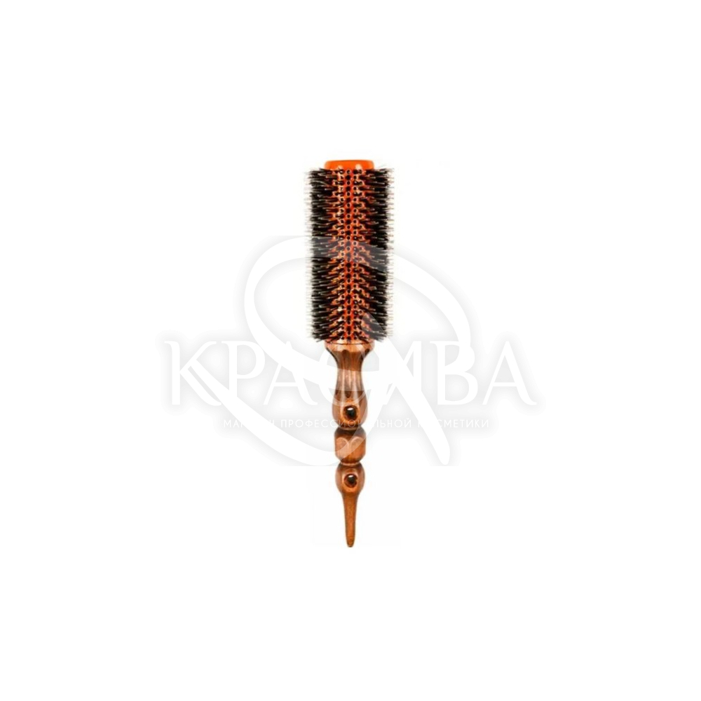 Щетина браша выполнена из термостойкого нейлона с добавлением серебра и натурального ворса дикого кабана. Такое сочетание материалов, позволило создать антибактериальную щетину, которая не удерживает запахи и убивает микробов. Ведь это очень важно при выборе парикмахерского аксессуара.