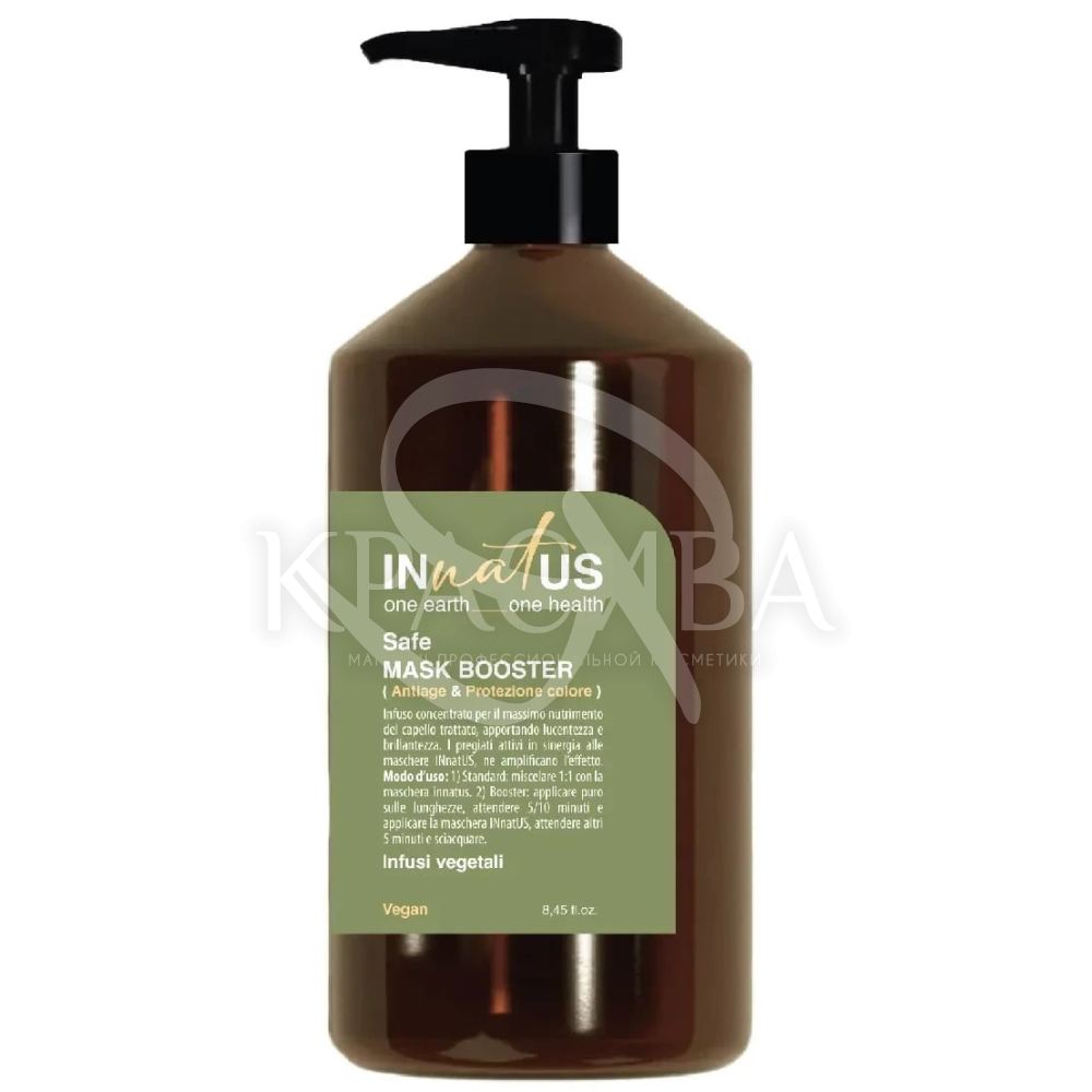 Описание: Концентрированный бустер с натуральными активными компонентами для максимального питания окрашенных и обесцвеченных волос. Придает максимальный блеск, сияние волосам, а также увеличивает стойкость и защиту цвета. Рекомендуется использовать в синергии с масками INnatUS, усиливая эффект.