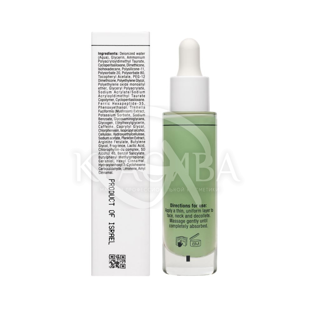 Состав: Ammonium Polyacryloyldimethyl Taurate, Amyl Cinnamal, Benzyl Salicylate, Butylene Glycol, Butylphenyl Methylpropional, Caffeine, Caprylyl Glycol, Cellulose, Chlorophyllin-copper complex, Chlorphenesin, Cyclopentasiloxane, Dimethicone, Ethylhexylglycerin, Ferric Hexapeptide-35, Geraniol, Glycerin, Glyceryl Polyacrylate, Glycogen, Glycosaminoglycans, Hexyl Cinnamal, Hydroxyethylcellulose, Hydroxyisohexyl 3-Cyclohexene Carboxaldehyde, Isohexadecane, Isopropyl Alcohol, Lactic Acid, Limonene, PEG-12 Dimethicone, Phenoxyethanol, Plankton Extract, Polysilicone-11, Polysorbate-20, Polysorbate-80, Potassium Sorbate, SD Alcohol 40, Sodium acetate, Sodium Acrylate/Sodium Acryloyldimethyl TaurateCopolymer, Sodium Benzoate, Sorbitan Oleate, Tocopheryl Acetate, Tremella Fuciformis (Mushroom) Extract, Deionized water (Aqua).