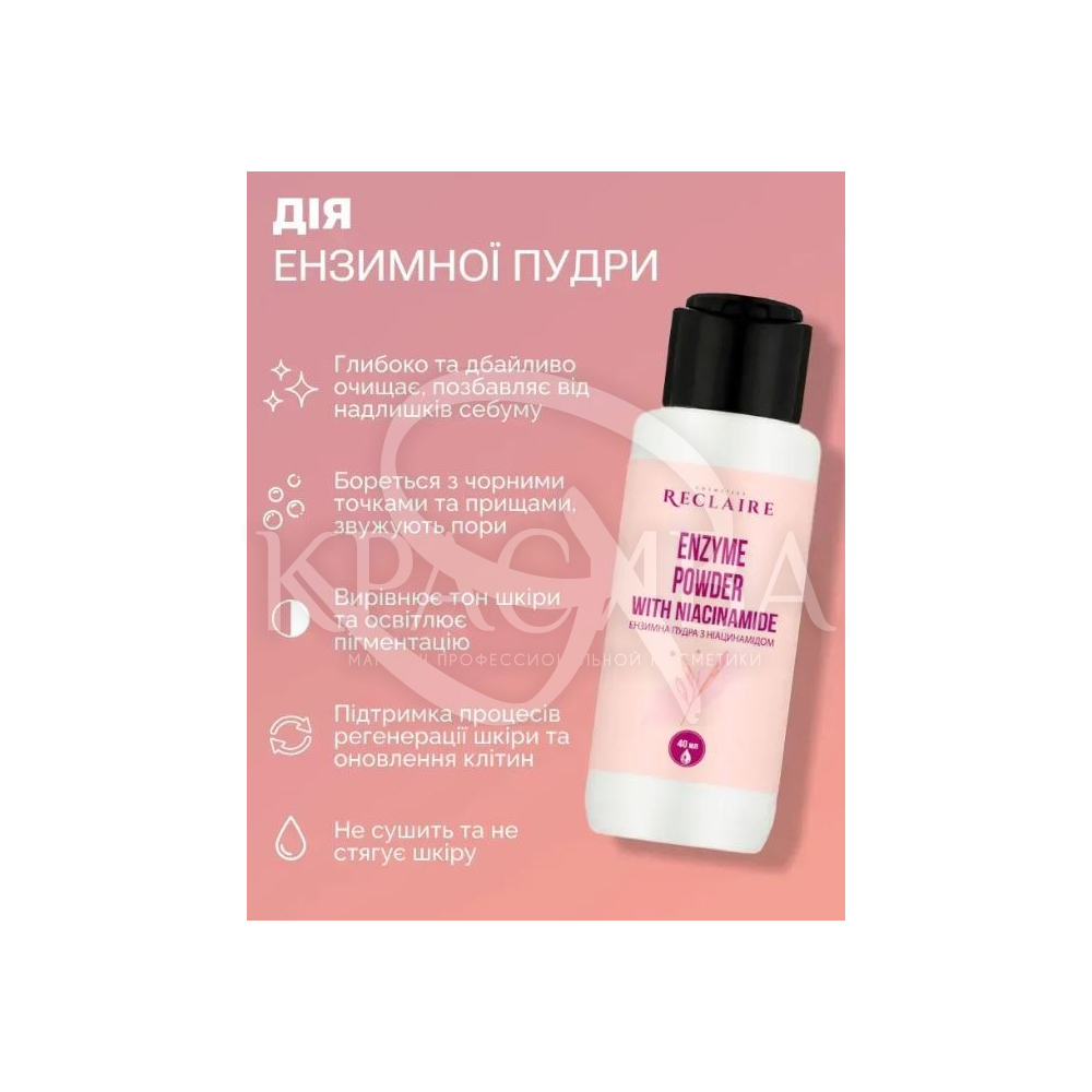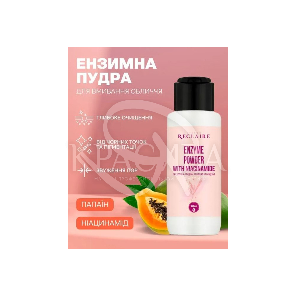 Описание: Энзимная пудра с ниацинамидом Reclaire - это уникальное средство, которое превращает заботу о коже в приятное и эффективное занятие. Энзимы используются для мягкого и эффективного удаления омертвевших клеток с поверхности кожи, что способствует ее обновлению и сиянию. Ее ключевая функция заключается в регулировании выработки кожного сала, сужении пор и выравнивании микрорельефа кожи. Ниацинамид, входящий в состав, способствует обновлению кожи, ускоряя процессы ее регенерации и поддерживая здоровое обновление клеток.