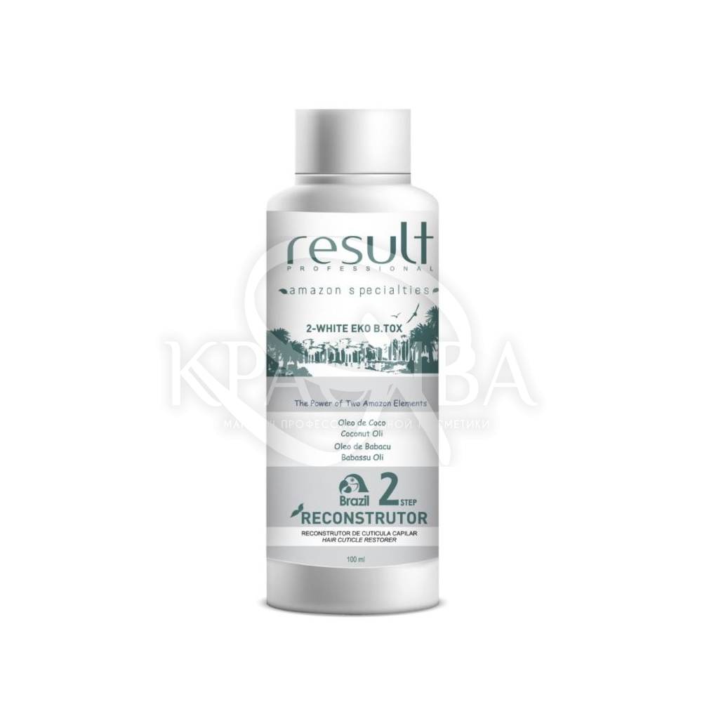 Описание: Интенсивный реконструктор (шаг 2) 2-WHITE EKO B.TOX создан для максимальной реконструкции и укрепления всех типов волос. Не содержит пигмента, благодаря чему можно не бояться проявления нежелательного цвета на осветленных волосах.