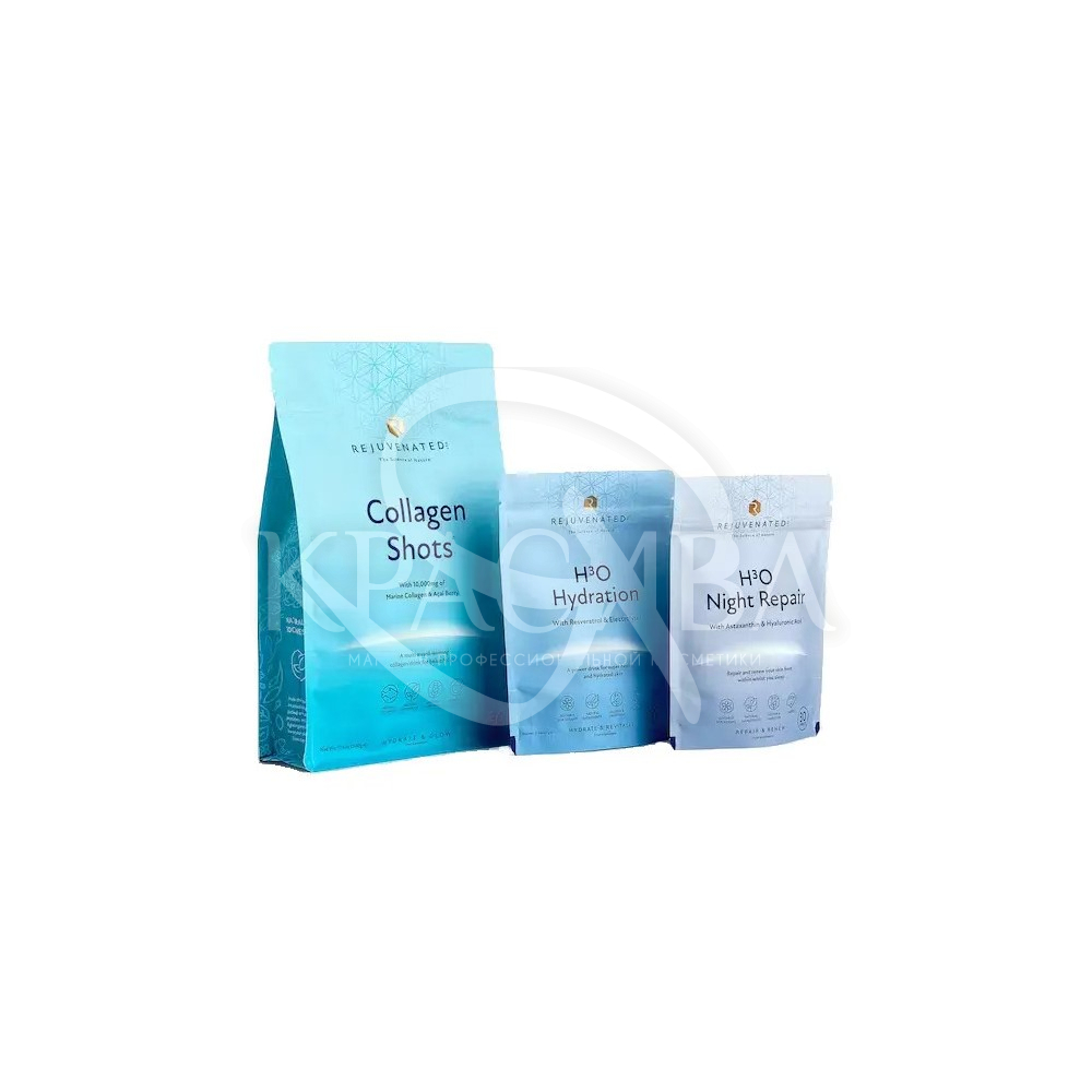 2. Rejuvenated H3O Hydration (смесь 60 г на 30 порций с мерной ложкой) – эффективное клеточное увлажнение с помощью электролитов и ресвератрола. Активные компоненты: Ионические электролиты-минералы, гиалуроновая кислота, эликсир долголетия Ресвератрол, Пре-биотики с витамином С, кальций, магний, черная смородина и бузина для борьбы с усталостью. 100% активных ингредиентов. Не содержит красителей, ароматизаторов, консервантов, лактозы, сой, глютен, пшеницы, дрожжи. Без ГМО. Подходит для веганов и сахарного диабета.