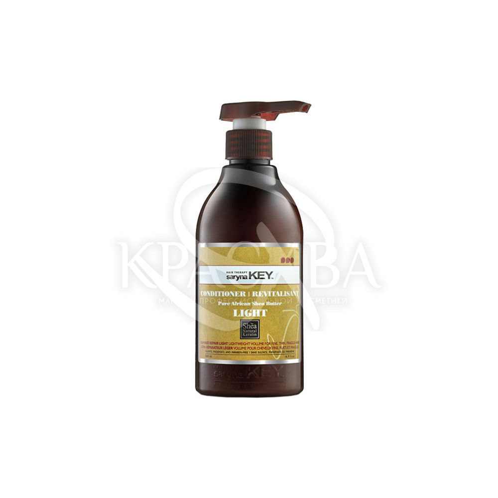 Описание: Благодаря большому количеству полезных ингредиентов кондиционер Saryna Key Damage Repair Light Pure African Shea Butter Conditioner прекрасно увлажняет и смягчает локоны, восстанавливает поврежденные клетки, делает волосы невероятно гладкими и шелковистыми, возвращает им здоровый и ухоженный вид. Масло ши укрепляет волосяную структуру, защищает пряди от ультрафиолетового излучения, нейтрализует активность свободных радикалов, борется с тусклостью, ломкостью и секущимися кончиками, придает локонам природный блеск. Растительные экстракты насыщают пряди витаминами, минералами и живительной влагой, предупреждают появление преждевременной седины, замедляют процессы старения. Средство не содержит сульфатов, фталатов и парабенов, деликатно воздействует на волосы, не вызывает аллергических реакций, подходит для чувствительной кожи.