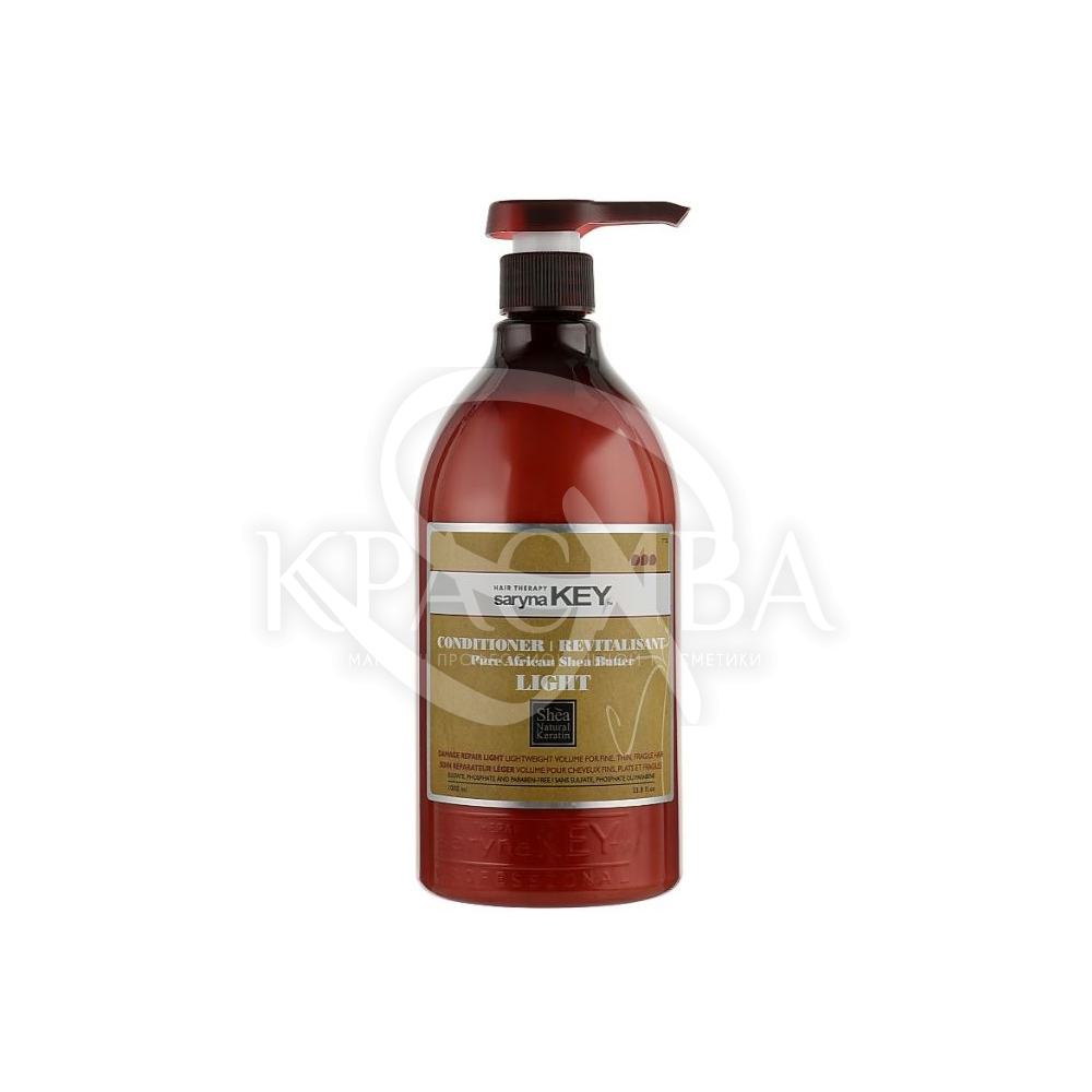 Описание: Благодаря большому количеству полезных ингредиентов кондиционер Saryna Key Damage Repair Light Pure African Shea Butter Conditioner прекрасно увлажняет и смягчает локоны, восстанавливает поврежденные клетки, делает волосы невероятно гладкими и шелковистыми, возвращает им здоровый и ухоженный вид. Масло ши укрепляет волосяную структуру, защищает пряди от ультрафиолетового излучения, нейтрализует активность свободных радикалов, борется с тусклостью, ломкостью и секущимися кончиками, придает локонам природный блеск. Растительные экстракты насыщают пряди витаминами, минералами и живительной влагой, предупреждают появление преждевременной седины, замедляют процессы старения. Средство не содержит сульфатов, фталатов и парабенов, деликатно воздействует на волосы, не вызывает аллергических реакций, подходит для чувствительной кожи.
