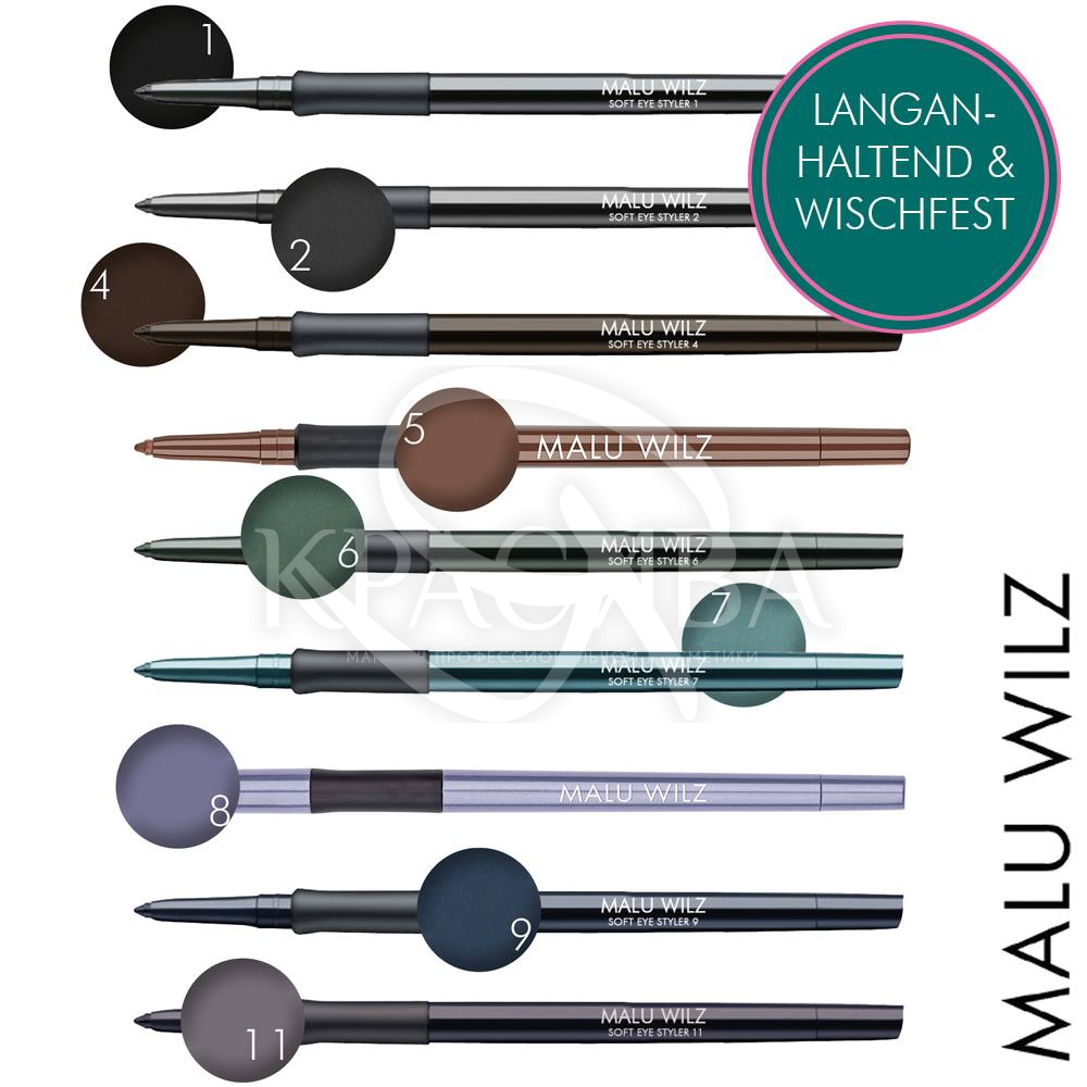 В палитре Malu Wilz Soft Eye Styler вы найдете несколько универсальных оттенков для разных цветотипов внешности и вариантов макияжа: будь то повседневный или праздничный образ. Карандаш не содержит минеральных масел, консервантов и ароматизаторов, поэтому подходит даже для чувствительных глаз.