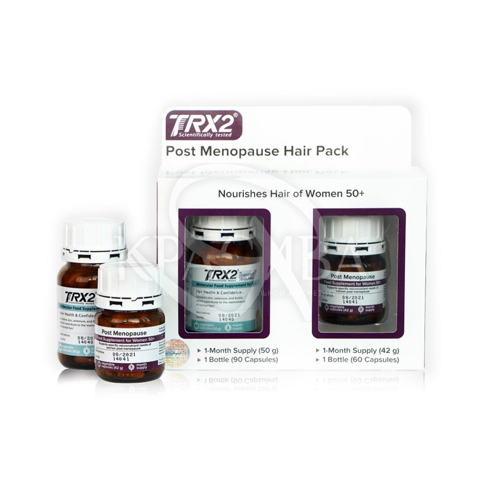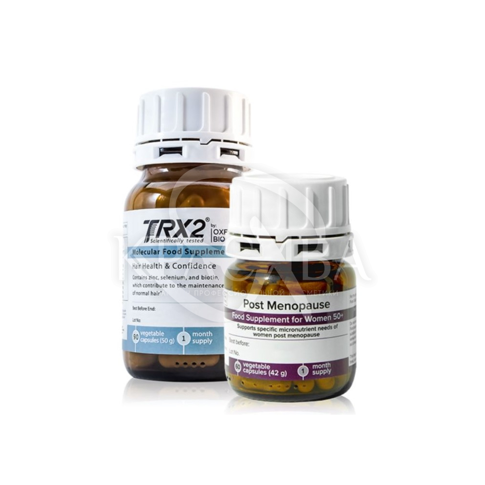 Описание: Это сочетание килинически протестированной TRX2 Молекулярной диетической добавки против выпадения волос и Молекулярного комплекса для женщин в период постменопаузы.