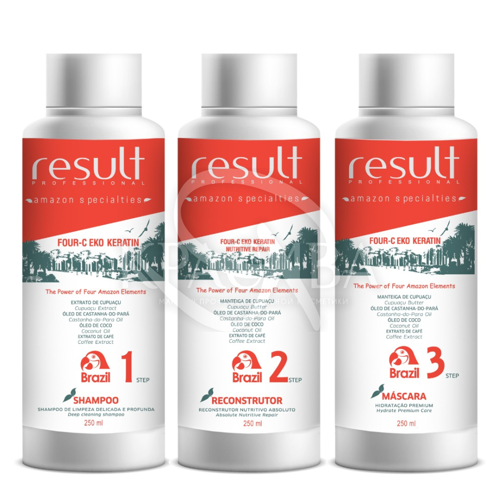 Программа кератинового выпрямления и усиленного восстановления волос Four-C EKO Keratin от бразильского бренда Result Cosmetics входит в линию Элементы Амазонии, ингредиенты для которой собирались вручную в самом экологически чистом регионе мира.