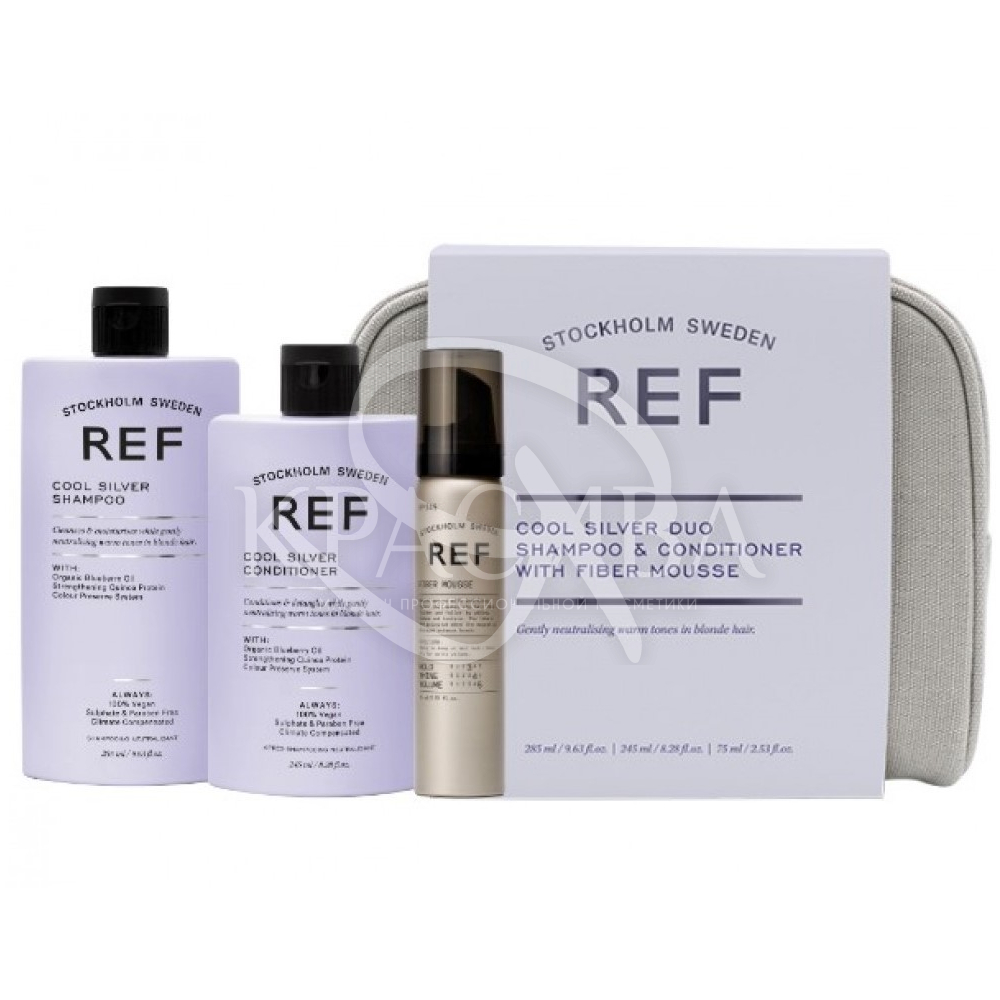 Описание: Beauty Bag Cool Silver – это набор уходных средств, созданный специально для светлых окрашенных или седых волос. В наборе есть безсульфатный шампунь и кондиционер с фиолетовыми пигментами, устраняющими нежелательные желтые оттенки, вызванные окислением или минеральными веществами. Оба средства бережно тонируют натуральные светлые, освещенные или отбеленные солнцем волосы и защищают от выцветания и вымывания цвета. Дополняет дуэт для стайлинга, который дарит укладке хороший объем, а также удобная косметичка, позволяющая брать необходимые средства с собой в путешествие или хранить их в одном месте.