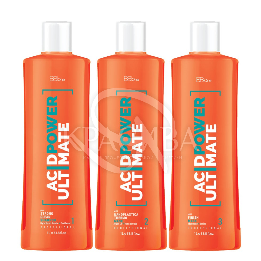 Описание: Формула нанопластики Acid Power содержит мощный комплекс натуральных кислот и аминокислот, что позволяет 100% выпрямить волосы любой сложности. Имеет приятный аромат свежести и подходит для работы с подростками и женщинами в положении. Может применяться на осветленных и мелированных волосах средней и низкой степени повреждения. Состав максимально комфортен, безопасен и эффективен, придает волосам зеркальную гладкость и блеск.