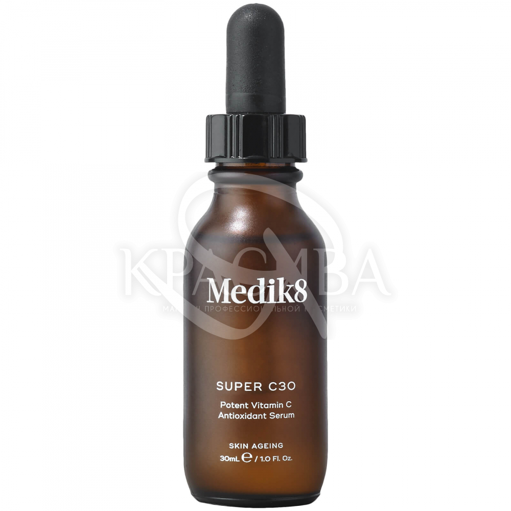 Описание: Увеличьте яркость и боритесь с видимыми признаками старения с помощью Super C30™. Эта ультра-осветляющая сыворотка является самым мощным витамином С Medik8. Используя силу ультра-стабильной 30% этилированной аскорбиновой кислоты (витамин С) плюс питательный для кожи витамин Е, она борется с экологическими и вызванными солнцем повреждениями для предотвращения преждевременного старения, повышая уровень коллагена, чтобы сгладить и осветлить цвет лица. Кожа заметно податлива с тонкими линиями и морщинками заметно умаленными и текстурой кожи уточненной. Высокопрочная сыворотка обогащена осветляющим корнем куркумы, чтобы оставить ваш цвет лица сияющим и оживленным, а также растительными маслами, такими как грейпфрут и герань для их антивозрастных преимуществ и дополнительной естественной антиоксидантной защиты. Легкая, сухая на ощупь сыворотка быстро впитывается, оставляя кожу эластичной и защищенной от свободных радикалов.