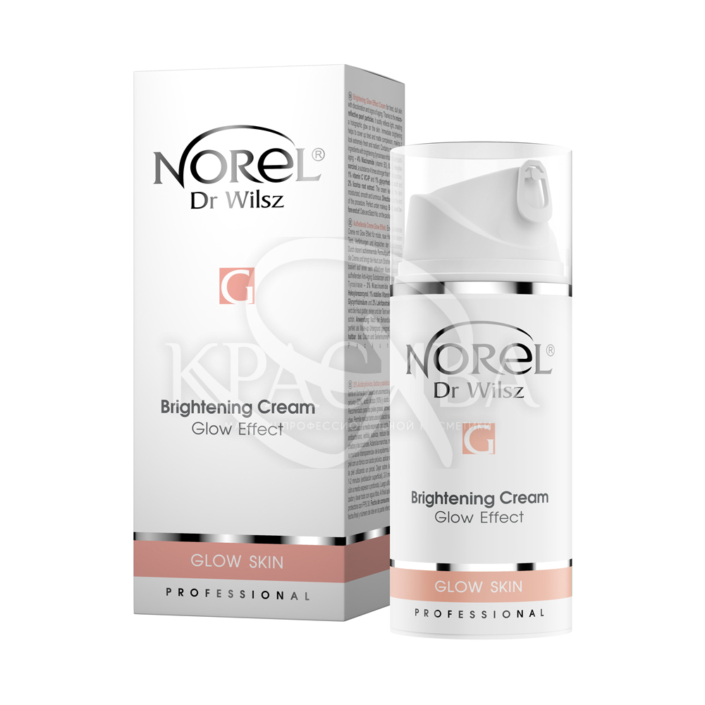 Описание: Осветляющий крем-эффект Glow Effect для уставшей, тусклой кожи с обесцвечиванием и признаками старения. Благодаря микроотражающим жемчужным частицам тонко отражает свет, создавая на коже голографическое сияние. Мгновенное осветление помогает скрыть уставший и матовый цвет лица, делая его очень свежим и сияющим. Рецептура крема основана на концентрированных современных активных компонентах с осветляющим (ингибиторы тирозиназы) и антивозрастным действием — 4% ниацинамид (витамин В3), 0,5% гексилрезорцин, вещество в 4 раза сильнее гидрохинона, 1% витамин С VC-IP и 1 % глицирретиновой кислоты и 2% экстракта корня солодки. День за днем кожа восстанавливает свой естественный, равномерный и здоровый цвет, становится идеально увлажненной, гладкой и сияющей.