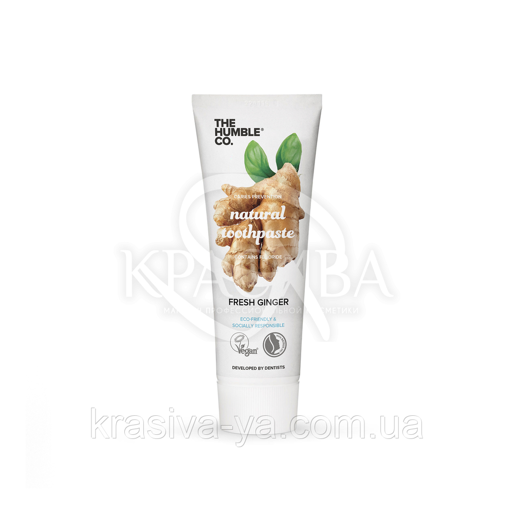 Описание: Натуральная зубная паста для ежедневного, комплексного ухода за полостью рта, укреплени десен и профилактики кариеса. Содержит 100% натуральный экстракт имбиря, который имеет естественные антисептические свойства и придающий необычный, приятный аромат. Специальная формула пасты, основанная на принципах натуральной гигиены полости рта. Благодаря активному действию компонентов зубная паста имеет высокий уровень комплексной защиты от кариеса, предотвращает рост бактерий и образование налета, сохраняет свежесть дыхания и нормализует pH слюны.