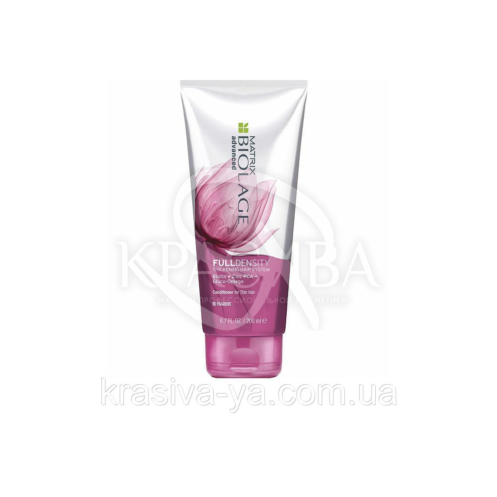 Профессиональный кондиционер Biolage Full Density используется после мытья волос шампунем этой же серии. Он не только облегчает расчесывание локонов и предупреждает их спутывание. Это средство обволакивает каждый волосок тончайшим слоем, утолщая его структуру и увеличивая в диаметре. Благодаря этому волосы становятся не такими тонкими и ломкими, дольше сохраняют укладку и объем. Кондиционер наполняет их жизненной силой, делает их упругими и эластичными, возвращает им природный блеск и привлекательность.