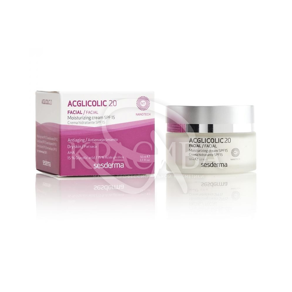 Описание: Омолаживающий крем Sesderma Acglicolic 20 Crema Hidratante SPF 15 со свободной и липосомированной гликолевой кислотой обновляет, регенерирует и увлажняет кожу. Предназначен для сухой кожи, адаптированной к гликолевой кислоте.