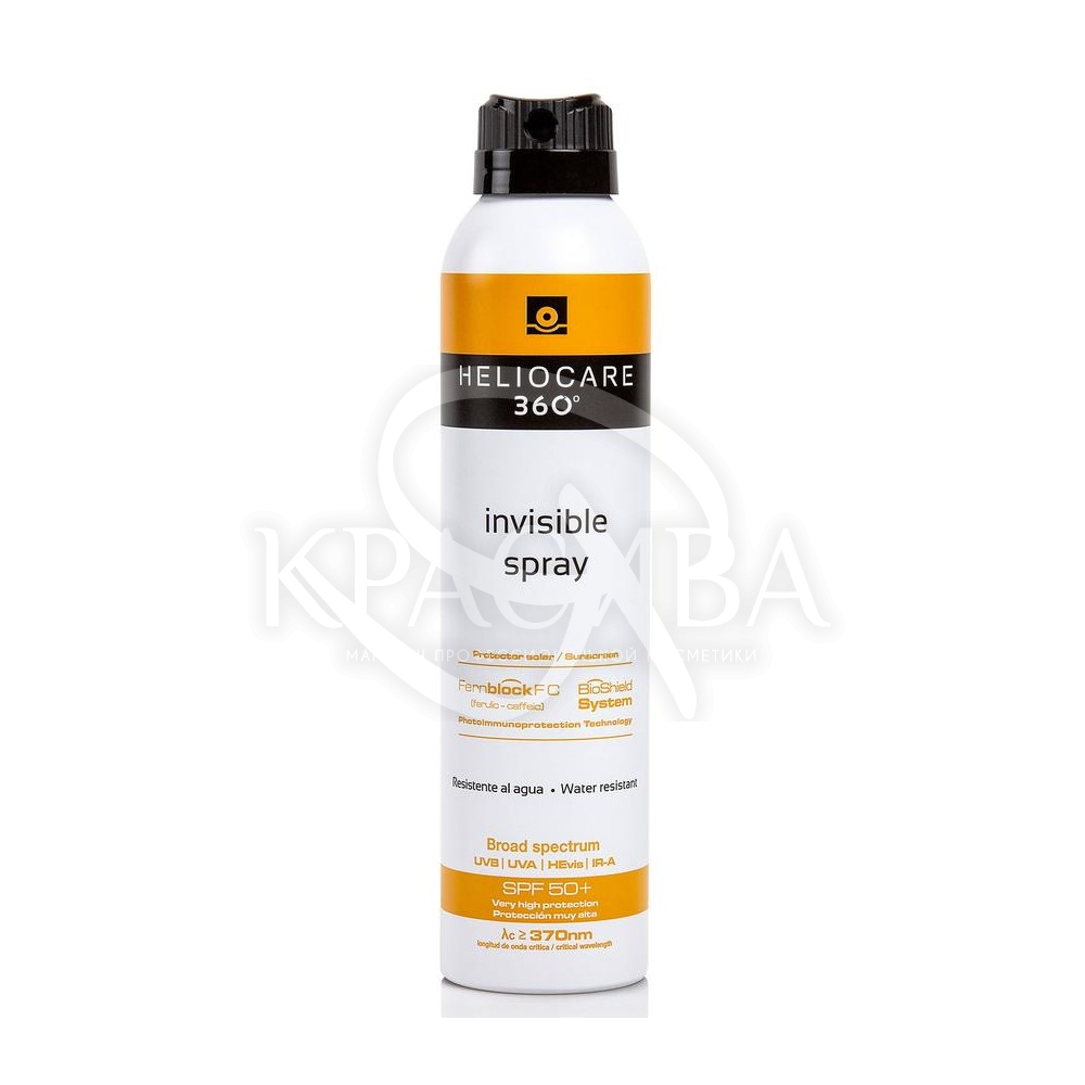 Описание: Спрей Heliocare 360 Invisible Spray SPF50 обеспечивает очень высокую защиту от солнечных лучей широкого спектра, от UVB, UVA, IRA фильтров. Его эксклюзивный антиоксидантный комплекс с Fernblock FC, богатый феруловой и кофейной кислотой, зеленым чаем и витаминами С и Е, усиливает антиоксидантное и фотоиммунозащитное действие.