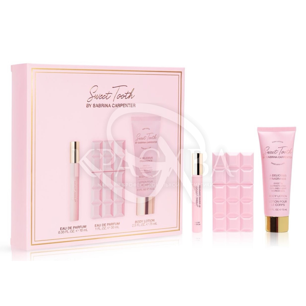 Описание набора: Окутайте себя (или любимого человека) непревзойденным наслаждением с подарочным набором Sweet Tooth. Набор содержит два размера парфюмерной воды и ароматизированный лосьон для тела для многослойного аромата, который будет длиться весь сезон. Компактный и удобный для путешествий размеры для использования ароматов в пути. Аромат содержит ноты шоколада с оттенками какао, лесного ореха, сладкой ванили и десертной карамели, совмещенные с лепестками жасмина, искрящимся бергамотом и чувственным мускусом.