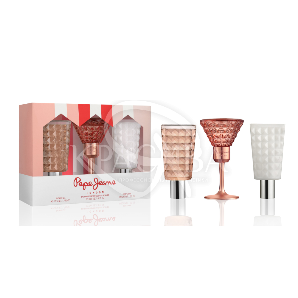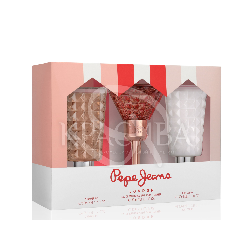 Описание набора: Парфюмерная вода для женщин PEPE JEANS 30 мл - Лосьон для тела 50 мл + Гель для душа 50 мл.