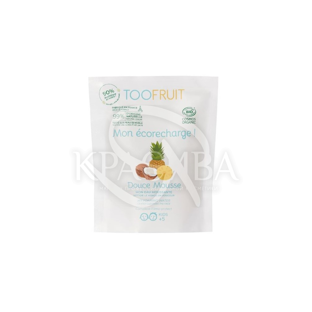 Эксперты французского бренда TOOFRUIT создали для достигших пятилетнего возраста деток пенку для умывания с приятным фруктовым ароматом. Она на 99% состоит из натуральных и на 19% из органических компонентов. Формула средства содержит масла кокоса, оливы и клубники, а также сахарный тростник и глицерин. Пенка для умывания не сушит кожу и легко смывается водой.