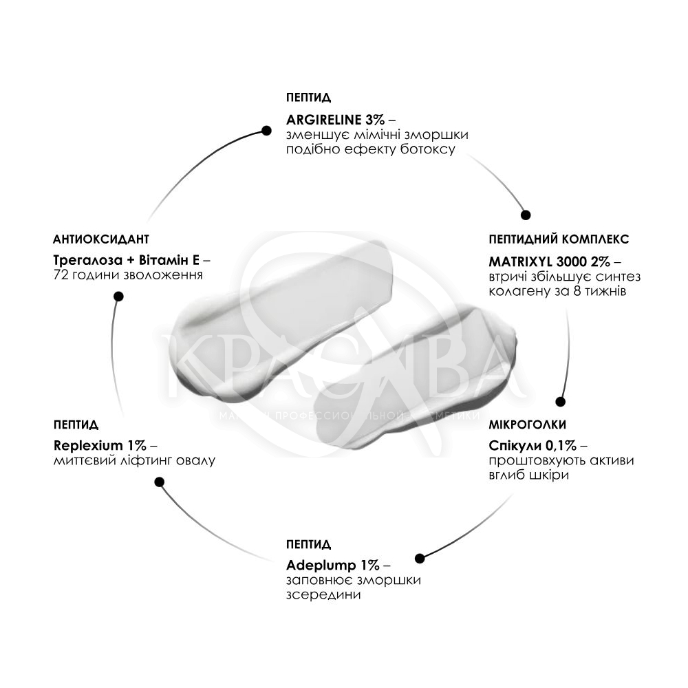 Состав: Aqua (Water), Caprylic/Capric Triglyceride, Squalane, Propanediol, Glycerin, Isosorbide Dicaprylate, Polyglyceryl-4 Olivate/Polyricinoleate, Cera Alba (Beeswax), Hydrogenated Ethylhexyl Olivate, Hydrogenated Olive Oil Unsaponifiables, Camellia Oleifera Seed Oil, Oryza Sativa (Rice) Bran Oil, Tocopheryl Acetate, Magnesium Sulfate, Phenoxyethanol, Panthenol, Mannitol, Acetyl Tetrapeptide-11, Acetyl Tetrapeptide-9, Acetyl Hexapeptide-8, Caprylyl Glycol, Carbomer, Polysorbate 20, Palmitoyl Tripeptide-1, Palmitoyl Tetrapeptide-7, Arnica Montana Flower Extract, Sodium Polyglutamate, Hydrolyzed Sponge, Parfum (Fragrance), Xanthan Gum, Ethylhexylglycerin, Tetramethyl Acetyloctahydronaphthalenes, Linalool, Linalyl Acetate, Alpha-Isomethyl Ionone.