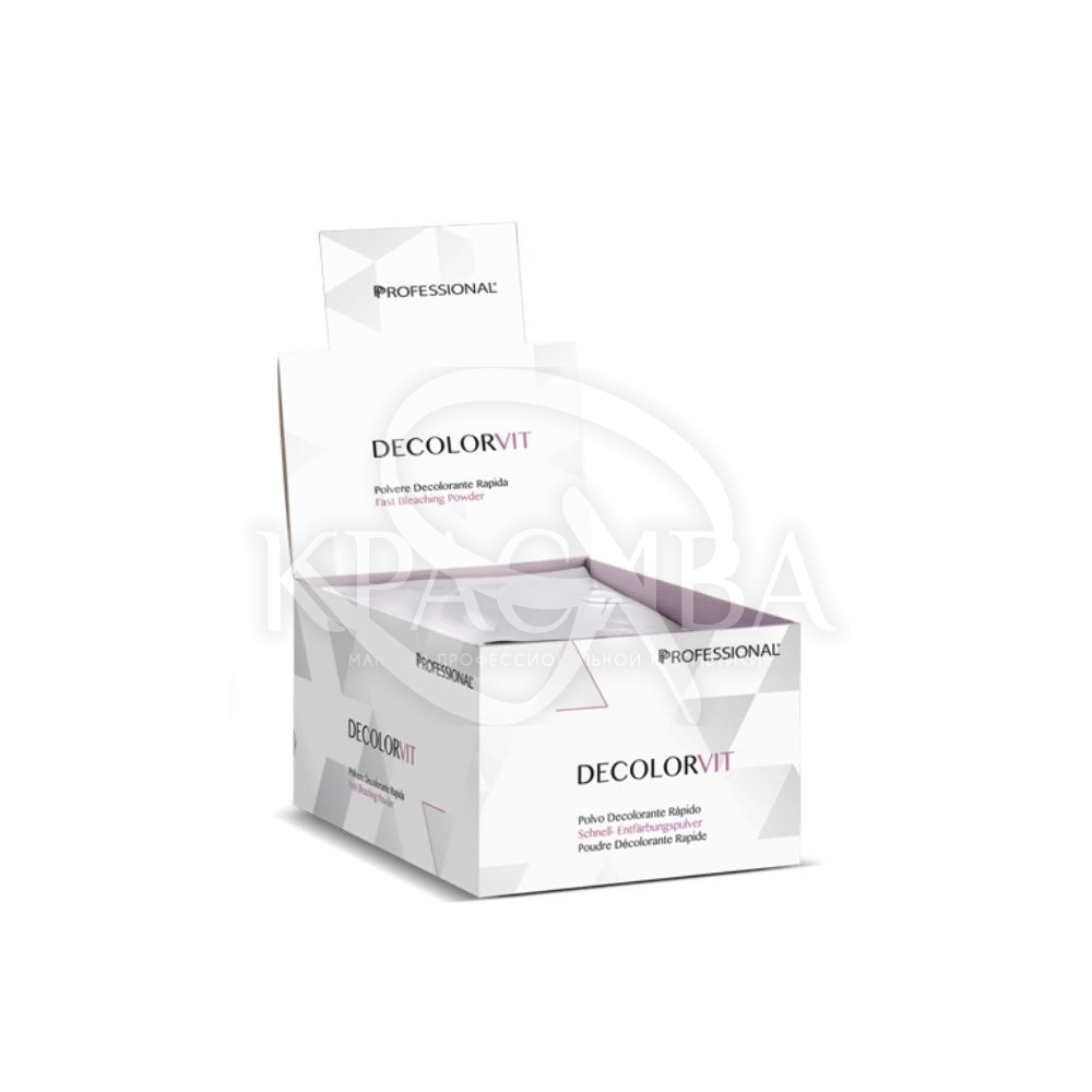 Описание: Decolorvit быстро обесцвечивающий порошок, идеально подходит для интенсивного и постепенного осветления до 7/8 тонов. Идеально подходит для техники балаяж с фольгой. Не повреждает волокна волос.