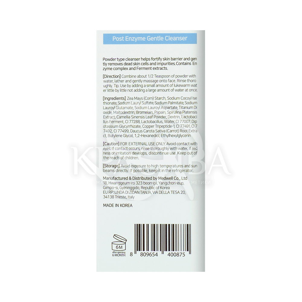 Описание: Мягкая, но мощная энзимная пудра, которая обеспечивает глубокую очистку пор и мягкое отшелушивание. Содержимое энзимов и постбиотиков восстанавливает баланс микробиому кожи, уменьшает воспаление и укрепляет кожный барьер.