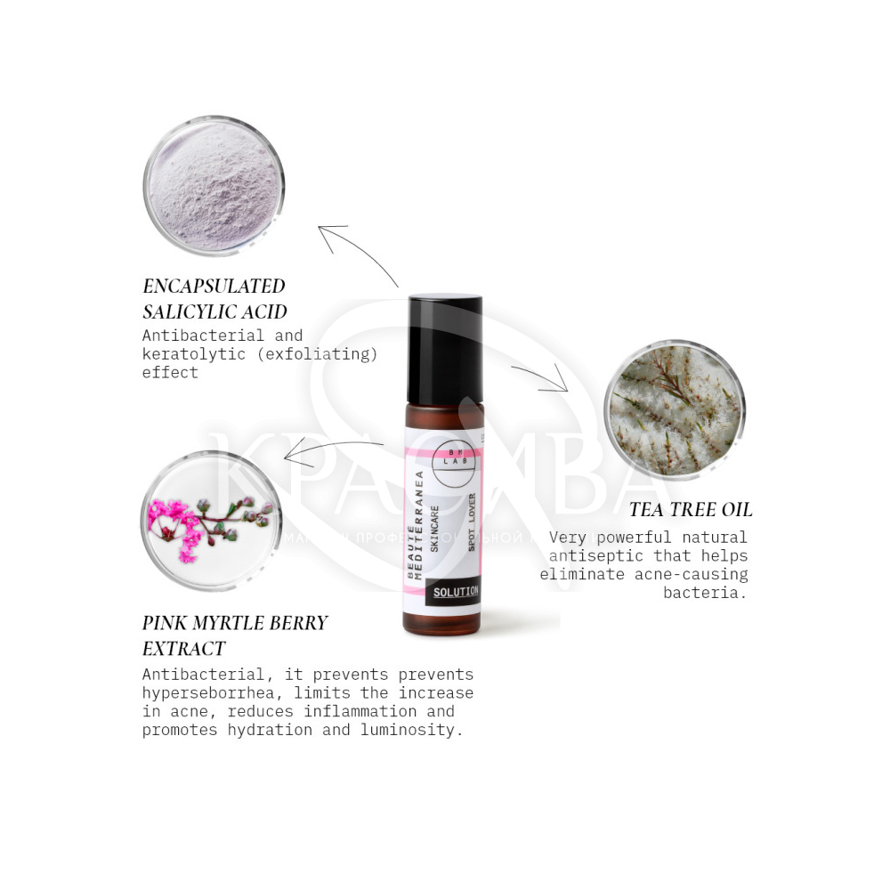 Описание: Познакомьтесь с идеальным союзником для создания кожи без прыщей. Spot Lover сочетает в себе инкапсулированную салициловую кислоту с основным активным ингредиентом масла чайного дерева и экстракт ягод розового мирта, регулирующий кожный жир, влияющий на прыщи, помогая лечить и улучшать внешний вид кожи. Очищает, защищает и сохраняет кожу в форме, уменьшая размер пор, удаляя накопившееся кожное сало и остатки на коже.