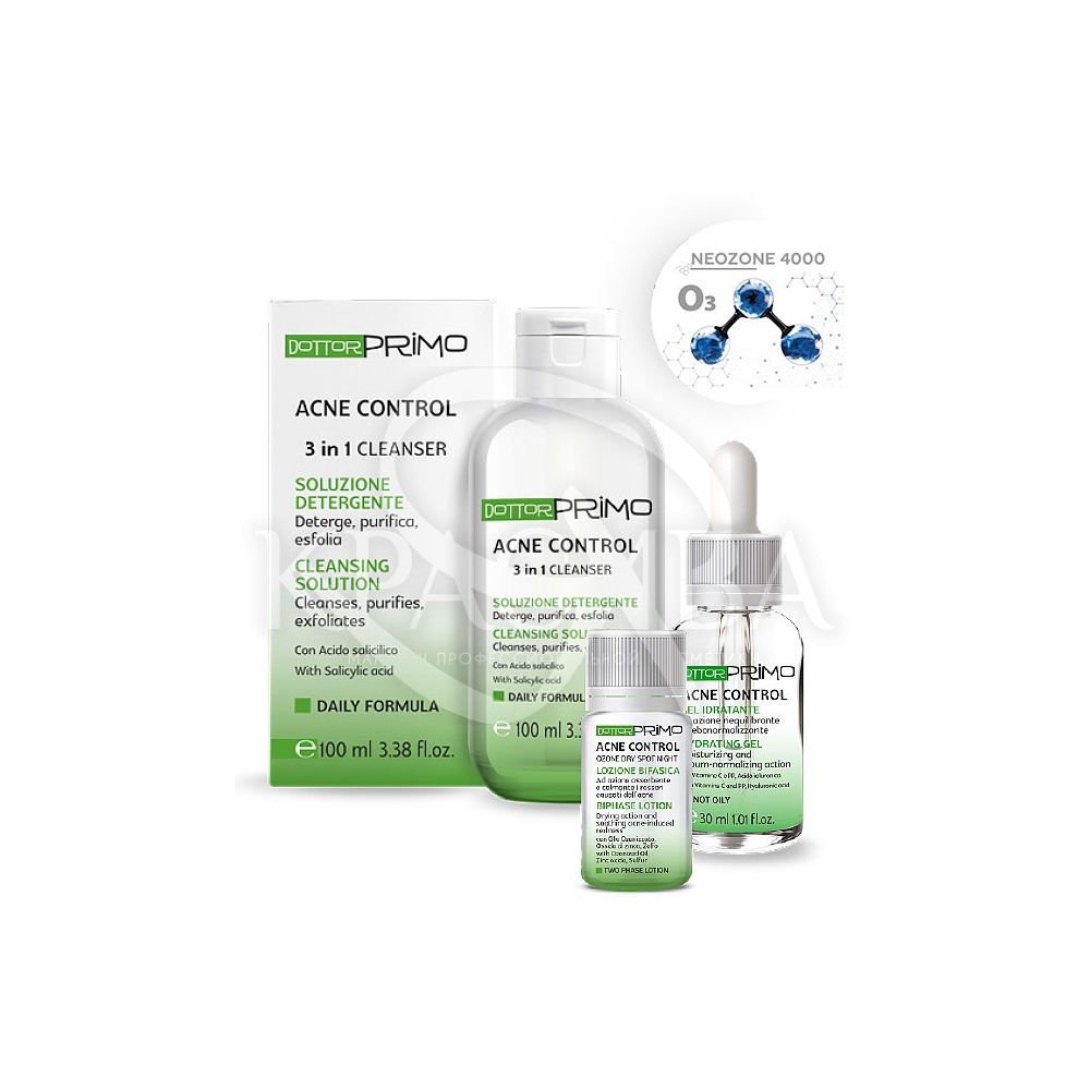 Салициловый 2% очищающий гель для проблемной кожи с демодекозом Акне Контроль Клинсер с эффектом 3 в 1: эксфолиация, себорегуляция, очищение Dottor Primo Acne Control 3 in 1 Cleanser, 100 мл