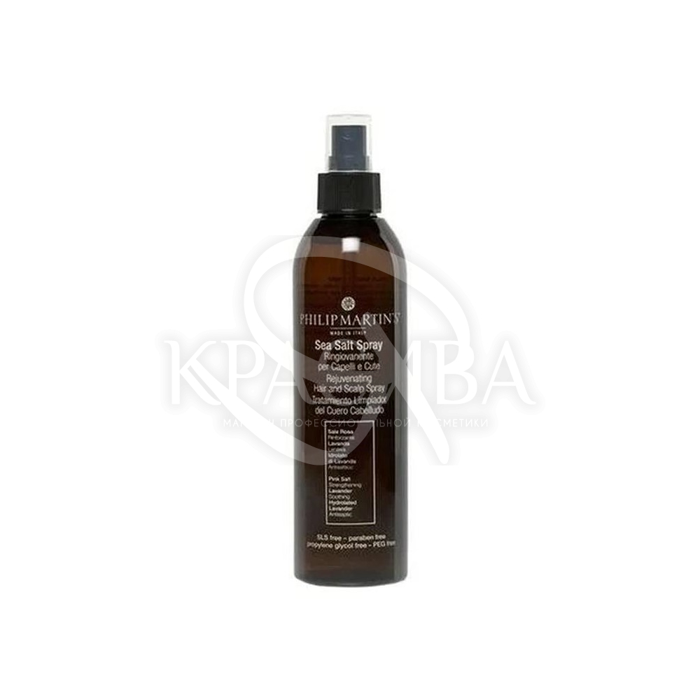 Описание: Спрей для волос с морской солью Sea Salt Spray итальянской компании органической косметики Philip Martin`s подходит для улучшения состояние кожи головы и локонов любого типа. Невесомая консистенция продукта легко наносится на пряди и эпидермис, равномерно распределяется, хорошо впитывается полностью, не требует смывания, не оставляет липкой плёнки и разводов. Средство рекомендовано для всех, у кого быстро загрязняется голова и пряди, подходит для чувствительной кожи, а также склонной к образованию перхоти.