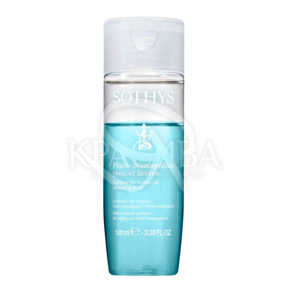 Описание: Средство Eye And Lip Make-Up Removing Fluid от бренда Sothys обладает способностью мгновенно растворять и устранять частички косметических препаратов. Оно с легкостью снимает остатки туши, теней и помад.
