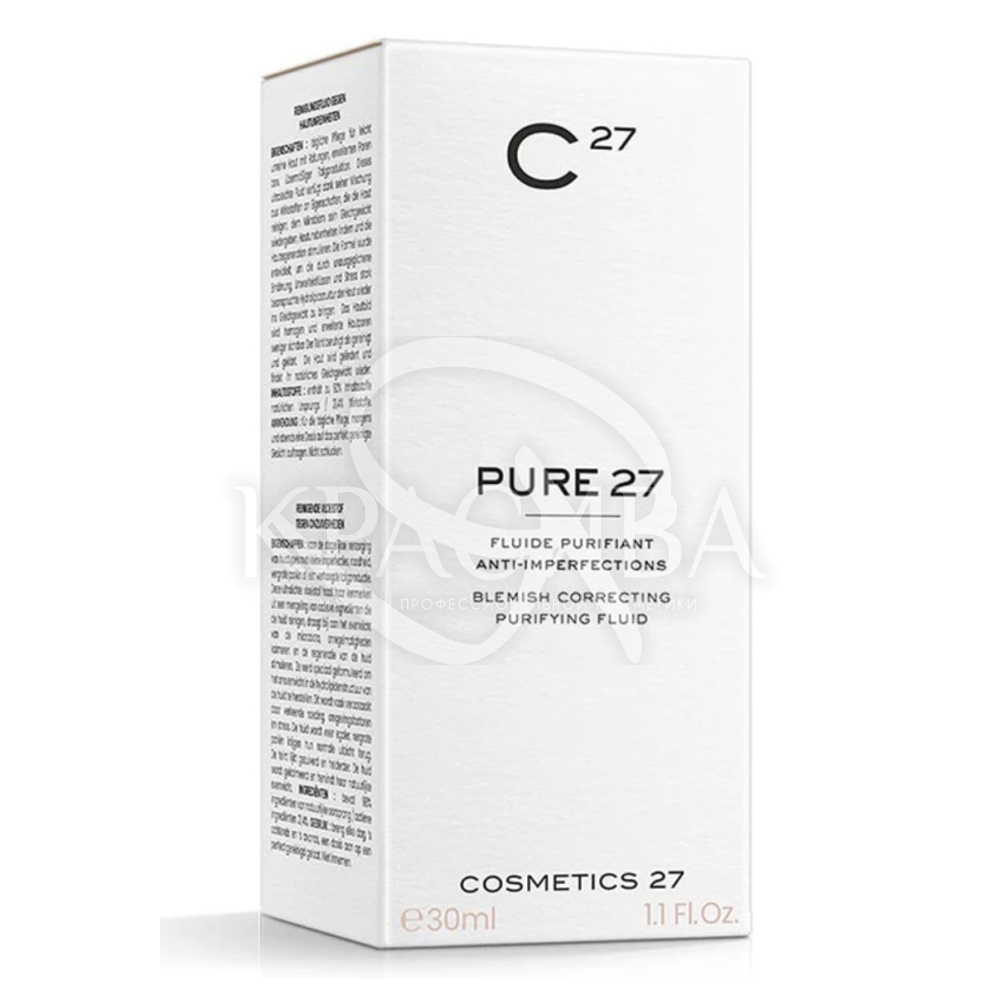 Эффективный увлажняющий флюид Pure 27 от Cosmetics 27 для борьбы с недостатками кожи, сыпью, расширенными порами, избытком себума. Особое сочетание активных ингредиентов обеспечивает глубокое очищение кожи, гидратацию, баланс микробиом и устранения недостатков. Формула помогает коже справиться с нарушениями гидролипидной структуры эпидермиса, часто является следствием несбалансированного питания, агрессивной экологии, стресса и ношение маски. Сыворотка способствует восстановлению равномерного чистого тона кожи, без высыпаний, покраснений и неровностей.