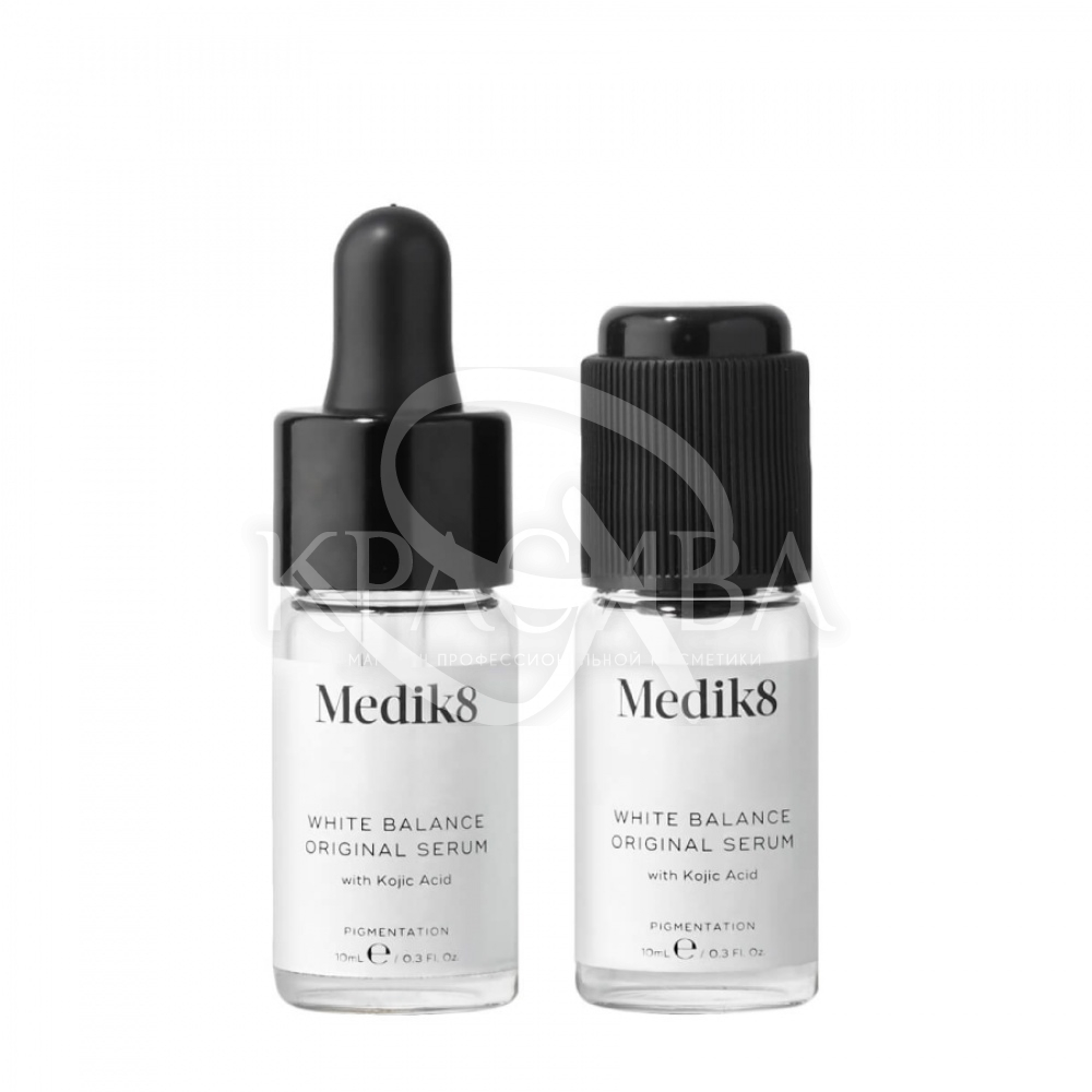 Описание: Сыворотка White Balance Original Serum представляет собой состоящую из двух составляющих частей, активируемую кликом систему осветления, которая нацелена на 7 причин гиперпигментации. Инновационная формула помогает уменьшить появление многих видов пигментации, в том числе, таких как: темные пятна, пигментные пятна, пятна от солнечного повреждения, неровный тон кожи и меланодермия. Благодаря тщательному подбору лучших осветляющих кожу ингредиентов, в том числе умно стабилизированной койевой кислоты, арбутина и ниацинамида, сыворотка заметно исправляет участки интенсивной пигментации, в результате чего общий тонус кожи выглядит более сбалансированным, а также предотвращается изменение цвета кожи в будущем. Койевая кислота известна своей нестабильностью. В данной формуле она сохраняется с помощью технологии Medik8 Click™ — уникальной упаковке, которая высвобождает активный компонент в увлажняющую формулу непосредственно перед первым применением, чтобы обеспечить ее жизнеспособность и свежесть. Эта прекрасная формула не содержит гидрохинон.