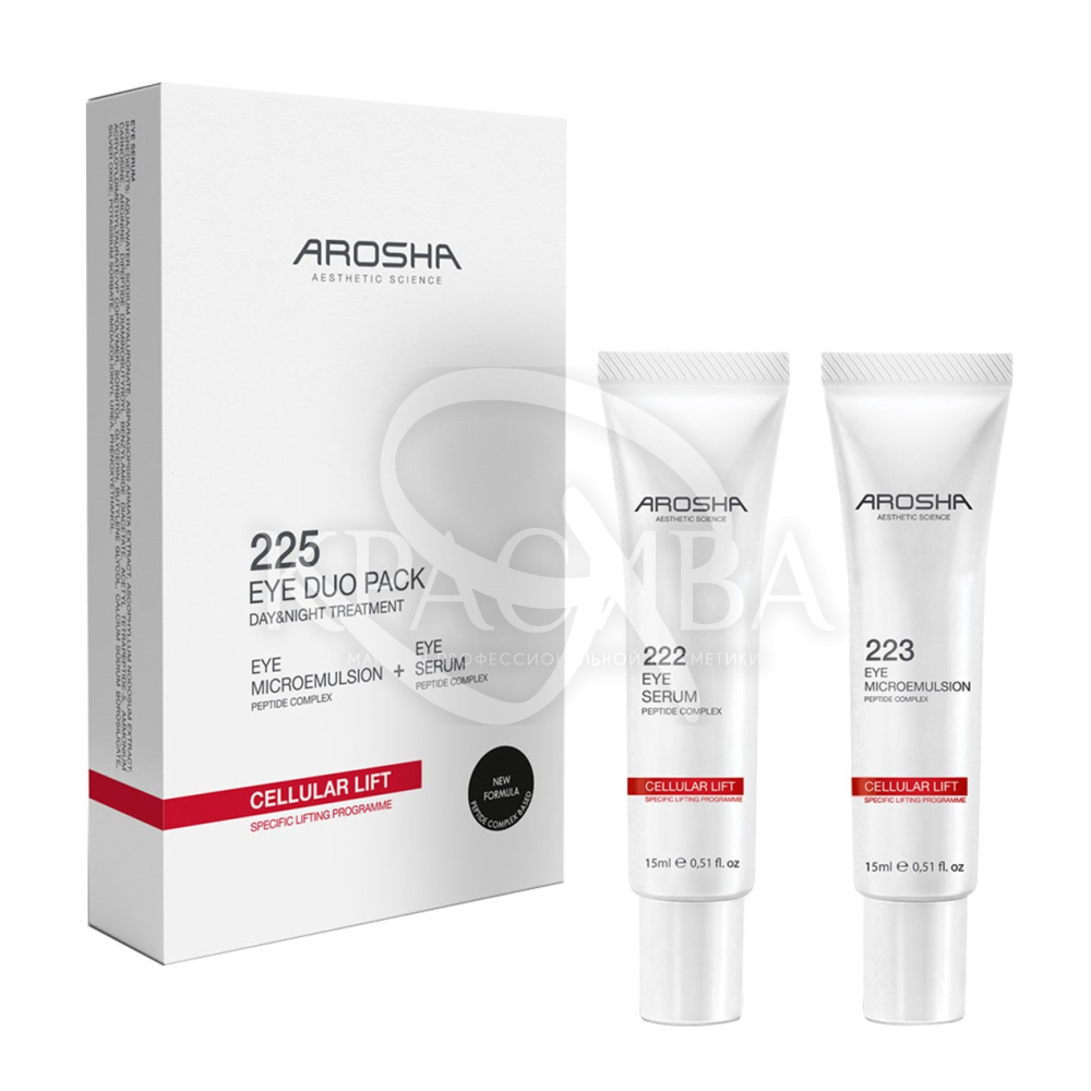 Опис: Ексклюзивний інтенсивний денний і нічний догляд спеціально розроблений для боротьби з появою зморшок, темних кіл, мішків і набряків в області очей. Eye Microemulsion + Eye Serum створені на основі передової комбінації Гіалуронової кислоти + Біоретинолу, що надає пружність та омолоджуючої дії, та пептидного комплексу з дренажною та ущільнюючою дією. День за днем очі виглядають яскравішими, омолодженими і жвавими.