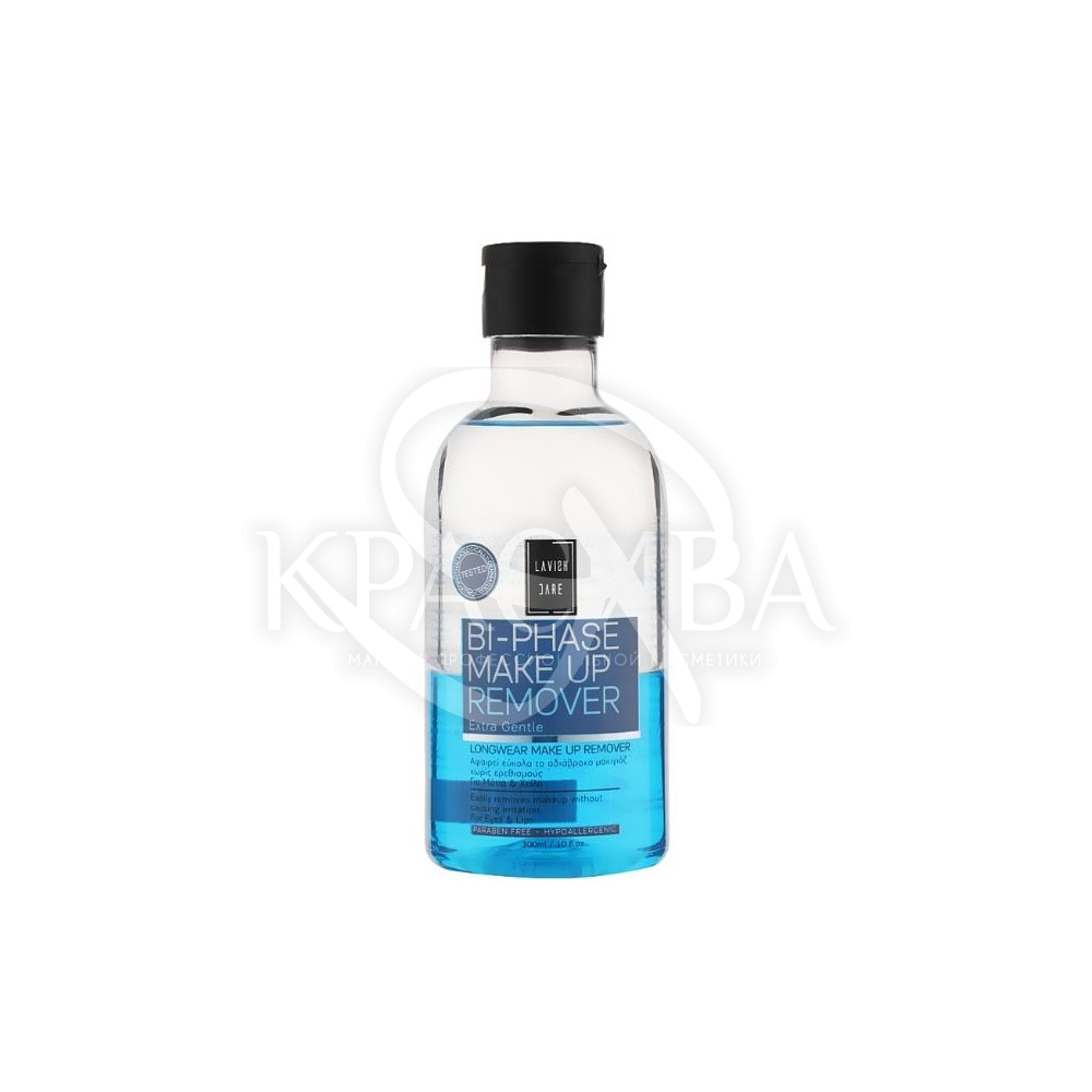 Опис: Двофазна рідина для зняття макіяжу м'яко очищає чутливу зону очей та губ, легко видаляє водостійку косметику, заспокоює та зволожує шкіру. Схвалений дерматологами та офтальмологами. Без ароматизаторів.