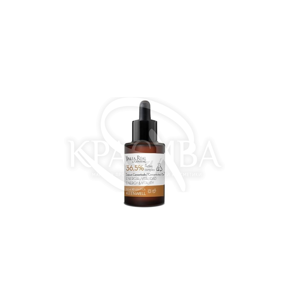 Опис: Ефективна концентрована зволожуюча сироватка, натхненна передовими космецевтичними методами. Він інтенсивно оживляє шкіру, заряджаючи її енергією завдяки високій концентрації потужних активних інгредієнтів, що надають енергію (36,5%).