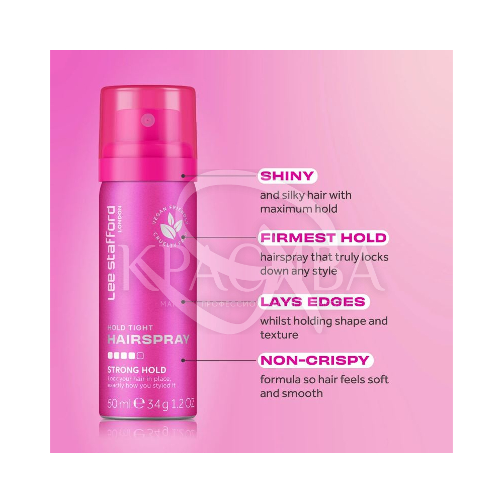 Опис: Спрей для волосся Lee Stafford Hold Tight Hairspray Strong Hold - це лак надсильної фіксації.