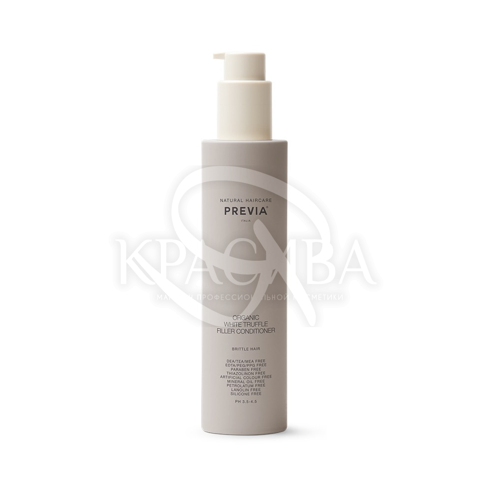 Продукт проникає глибоко в структуру волосся і відновлює всі пошкоджені ділянки на ньому, згладжуючи кутикулу. Також він створює спеціальну захисну оболонку, що запобігає негативний вплив зовнішнього середовища. Бальзам добре живить і зволожує кожну клітинку, регулюючи її гідро-ліпідний баланс, внаслідок чого ваша шевелюра стане гладкою, шовковистою, блискучою і слухняною, об'ємної і густий. Previa White Truffle Filler Conditioner порятунок для ламких і тьмяних волосся, які потребують додаткового догляду.