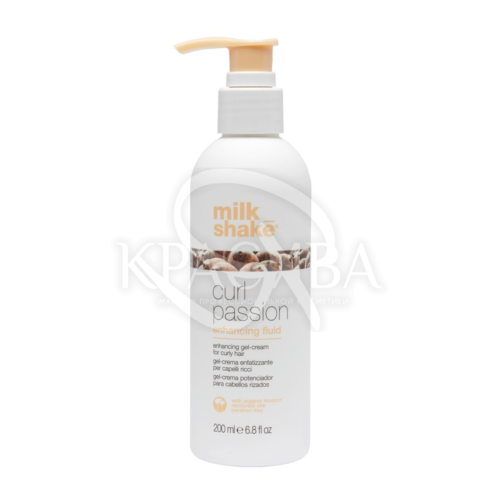 Опис: Це легкий гель крем для Кучеряве волосся. Він не обтяжує локони, надає їм блиску та чіткої форми. Підходить для сушіння феном із дифузором або брашингом. Цей засіб ідеально підходить для власниць кучерявого та хвилястого волосся. Воно робить їх м'якими, слухняними та не обтяжує. milk_shake curl passion enhancing fluid допоможе досягти пружних, еластичних і стійких кучерів.
