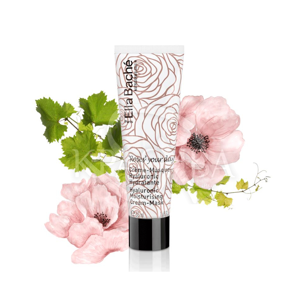 Опис: Ультра-свіжа кремова, що обволікає текстура маски з ароматом троянди за швидкий час наповнить шкіру вологою і комфортом. Вона володіє приємною консистенцією, яка з легкістю розподіляється по обличчю і забезпечує комфорт. У складі продукту немає мінеральних масел, парабенів, барвників і силіконів, які забивають пори і несприятливо впливають на здоров'я епідермісу. Активна формула збагачена виключно корисними інгредієнтами - високомолекулярної гіалуронової кислотою, жирними кислотами з мускусною троянди, вітаміном Е із зародків пшениці і поліфенолами квіток виноградної лози. Подаруйте своєму обличчю доглянутий вигляд з Ella Bache Hyaluronic Moisturising Cream-Mask.