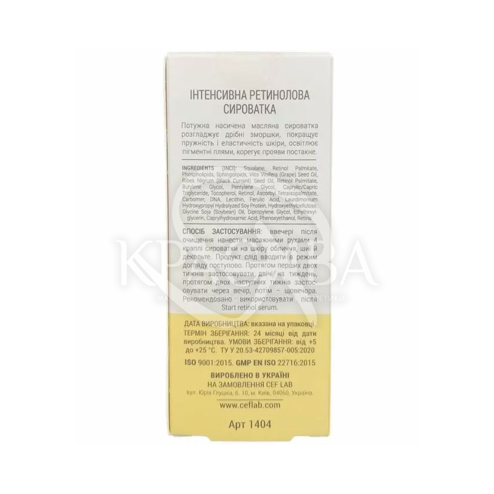 Активні інгредієнти: Сквален, Cylasphere Retinol 10S 10%, ретинол пальмітат 2%, Ceramide Complex CLR 2%, Smartvector® UV-CE 3%, олія чорної смородини, токоферол, Cytovector® Ferulic 1%, Retinal 0.