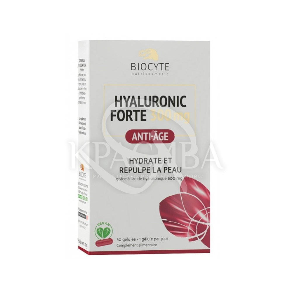 Склад: Склад (1 капсула): гіалуронат натрію (гіалуронова кислота 300 мг); допоміжні речовини: наповнювач: мікрокристалічна целюлоза; оболонка капсули рослинного походження (покриваючий агент: пулулан; желеутворювач: геланова камедь); Інгредієнт проти злипання: трикальцій фосфат, магнієві солі жирних кислот. Без ГМО.
