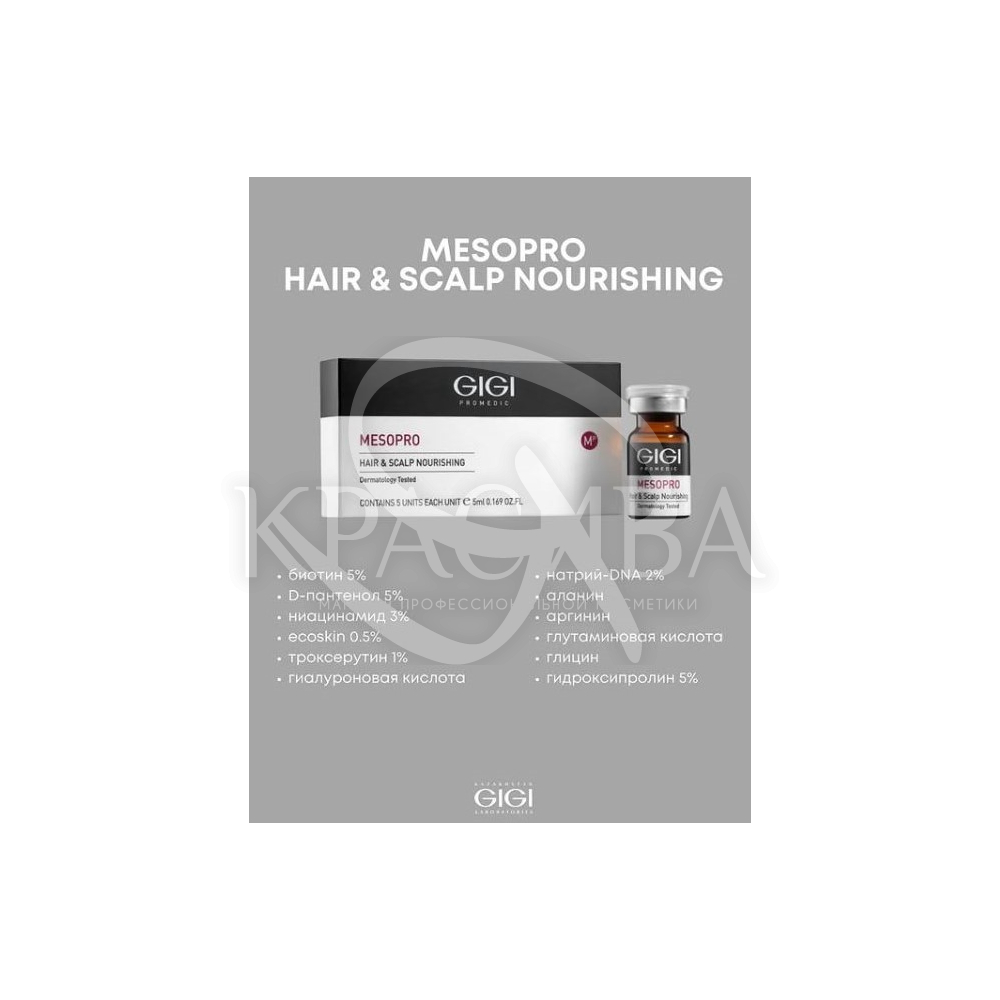 Активні інгредієнти: Біотин 5%, D-пантенол 5%, ніацинамід 3%, ecoskin 0.5%, троксерутин 1%, гіалуронова кислота, натрій-DNA 2%, аланін, глутамінова кислота, гліцин, гідроксипролін 5%.