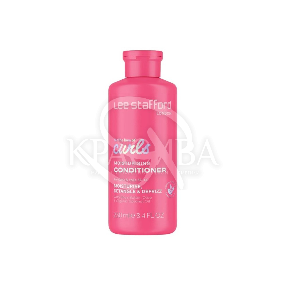 Опис: Кондиціонер для кучерявого волосся Lee Stafford For Love of Curls Conditioner розроблений спеціально для кучерів і завитків, щоб надати їм блиск. Засіб містить олію ши, оливкову олію та органічну кокосову олію для зволоження, розплутування і має ефект антифриз.