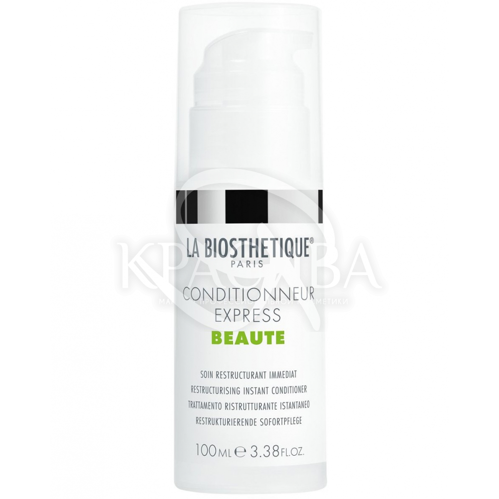 Опис: Незмивний крем-догляд для пошкодженого волосся Conditionneur Express від La Biosthetique розроблений спеціально для сухих і ламких волосся: він забезпечує їм оптимальний догляд та захист, допомагає відновити структуру волосяного стрижня і повернути пружність. Його ефективність Вас здивує. Натуральне біле масло захищає волосся і наділяє сліпучим блиском. Мультиактивний пантенол підтримує зволоженість, пружність і м'якість волосся, а кондиціонуючий полімер і екстракт бобів гуара покращують їх структуру.