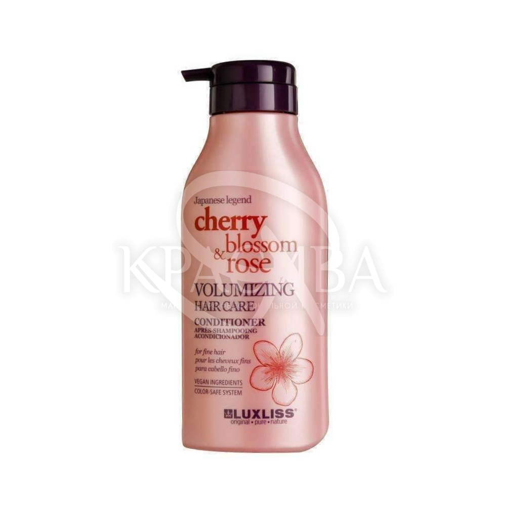 Опис: Кондиціонер для об'єму з екстрактами квітів японської сакури та рожевого масла. Збагачений протеїнами шовку кондиціонер відновлює структуру волосся, зміцнює і робить волосся слухняним і доглянутим, полегшує розчісування та укладання. Не містить сульфати, фосфати, мінеральні олії та парабени.