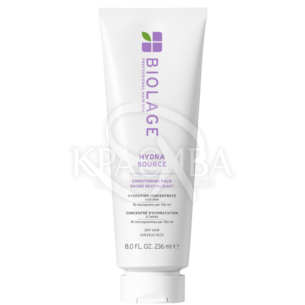 Опис: Кондиціонер для зволоження сухого волосся. Він містить сік алое, екстракти маракуї та морських водоростей, а також лимонну кислоту. Компоненти в комплексі ефективно і дбайливо доглядають та підтримують баланс зволоженості навіть найсухішого волосся. Рекомендується використовувати разом із шампунем Biolage Hydrasource Shampoo.