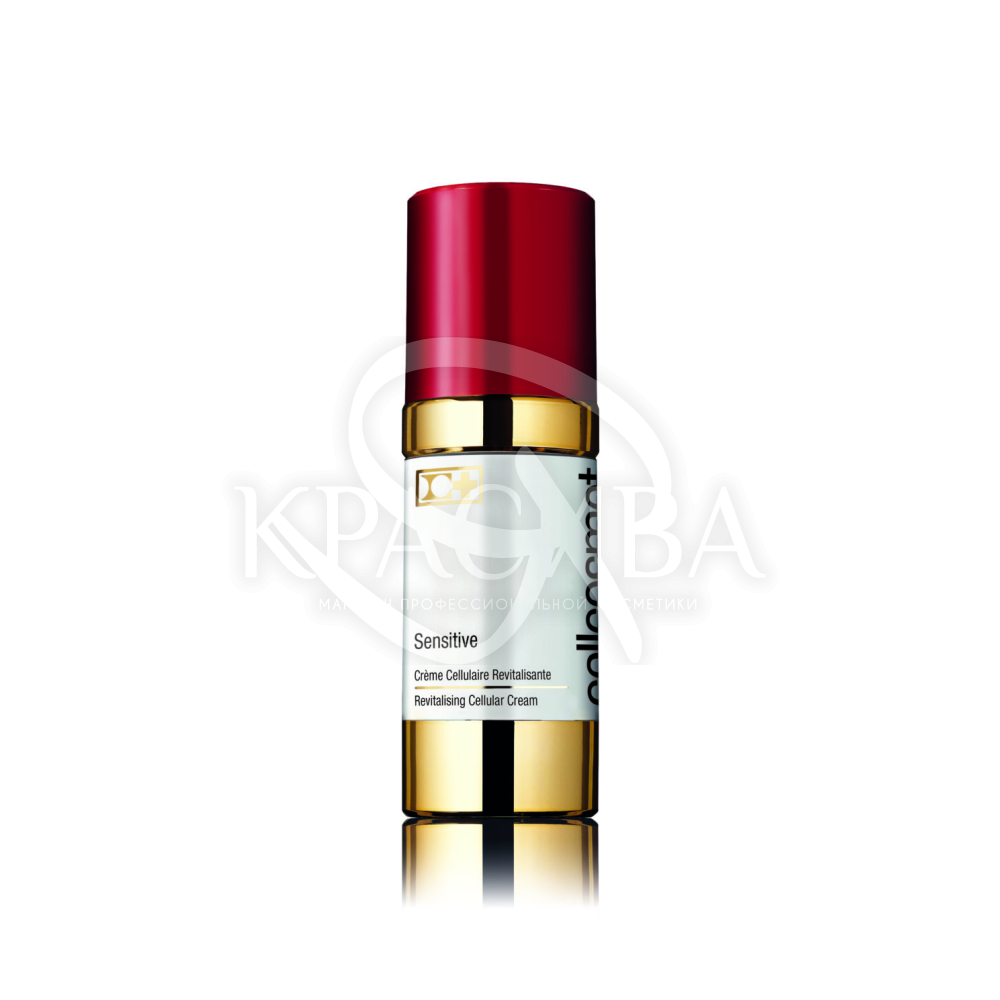 Опис: Засіб для повсякденного догляду за особливо вразливою шкірою. Клітинний крем Sensitive 24-годинної дії заспокоює суху шкіру та знімає почервоніння. Формула на основі клітинних екстрактів CytoPep™ (IC 2) та комплексу постбіотиків допомагає запобігти появі перших ознак старіння. Шкіра стає зволоженою, гладкішою і знову набуває життєвих сил. Легка текстура крему викликає приємне відчуття ніжності.